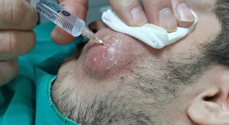A chin abscess is a painful and uncomfortable condition that occurs when a bacterial infection develops beneath the skin, creating a pocket of pus. This usually starts as a small red bump but can quickly grow into a large, swollen lump filled with fluid. In severe cases, like a huge chin abscess, the swelling can cause significant pain, tenderness, and difficulty moving the mouth or jaw. Fortunately, when the abscess is properly drained, patients often experience instant relief from the pressure and discomfort.