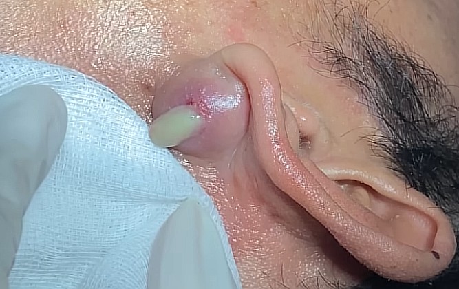 It is strongly discouraged to squeeze, pop, or cut a cyst at home. Doing so can push bacteria deeper into the skin, increase inflammation, or lead to an infection. Home attempts may also fail to remove the cyst wall, causing it to come back larger or more painful. In severe cases, improper handling can damage surrounding ear tissue. That is why professional guidance is the safest and most effective option.