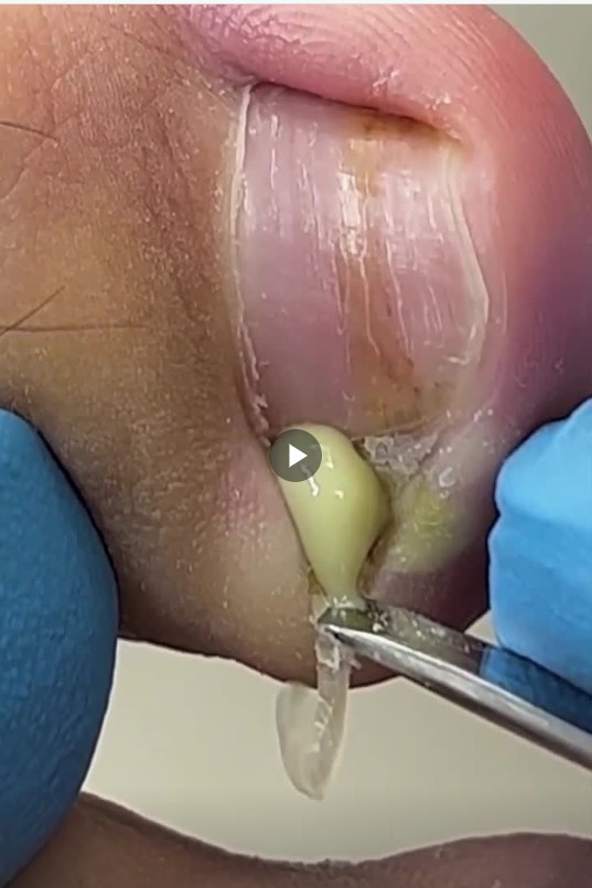 The procedure shown in the image demonstrates a professional ingrown toenail treatment. Using sterile instruments and protective gloves, the practitioner carefully removes the ingrown portion of the nail and drains the accumulated pus. This process helps relieve pressure, reduce pain, and eliminate infected material. Immediate improvement is often felt once the pus is released and the nail edge is properly lifted or removed.