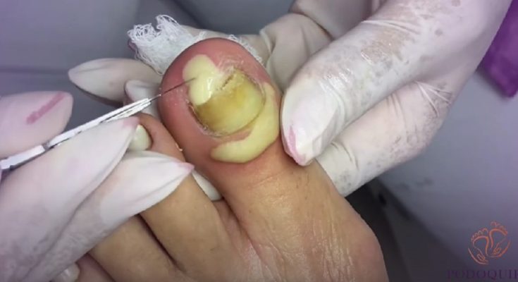 An infected toenail with pus is a common foot condition that can cause significant pain and discomfort if left untreated. As shown in the image, the toenail appears swollen, discolored, and filled with yellowish pus, which is a clear sign of bacterial infection beneath or around the nail. This condition is often associated with ingrown toenails, poor foot hygiene, or repeated pressure on the toes.