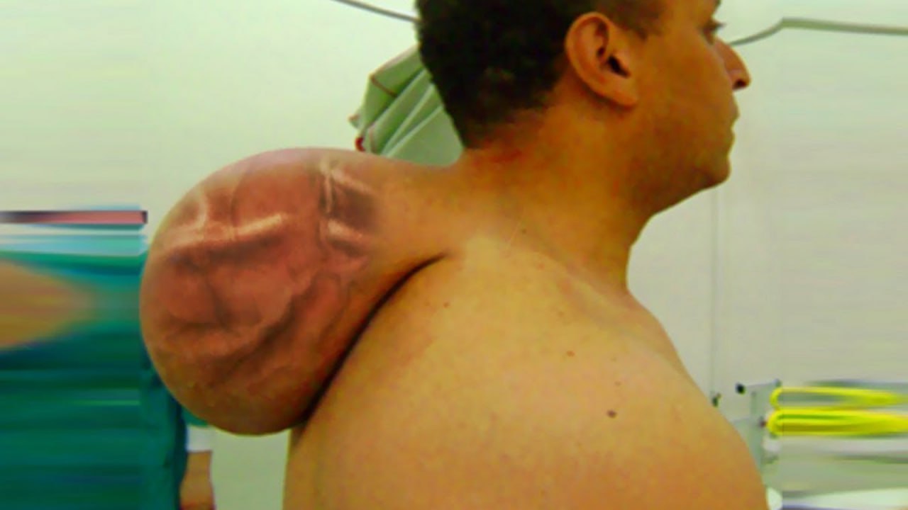 At first glance, the image above is almost unbelievable. A man stands sideways, revealing a huge, protruding mass on his upper back—so large that it completely changes the shape of his body. This is not a temporary swelling or minor injury. It is a long-term medical condition that has likely taken years to reach this size.
