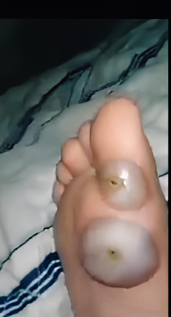 What you’re seeing in this image is not just a simple blister. The swollen toes, dark centers, and stretched skin strongly suggest infected blisters that have progressed into abscesses. These types of foot problems often begin with friction, tight footwear, burns, or pressure — but once bacteria enter, the condition can worsen rapidly.