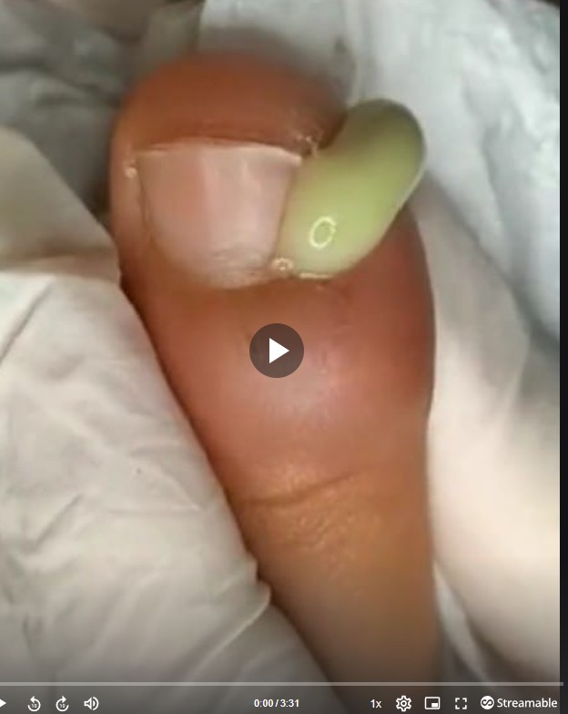 The image above captures a painful and advanced ingrown toenail infection with visible greenish-yellow pus draining from the side of the nail. The swelling, redness, and fluid buildup are strong signs of a bacterial infection known as paronychia or a toenail abscess.
