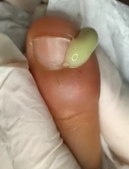 When the edge of the nail grows into the surrounding skin, it creates an opening for bacteria to enter. Over time, the infection worsens, leading to pressure buildup and the formation of pus. The green tint often indicates a deeper or more aggressive infection that requires proper medical treatment.