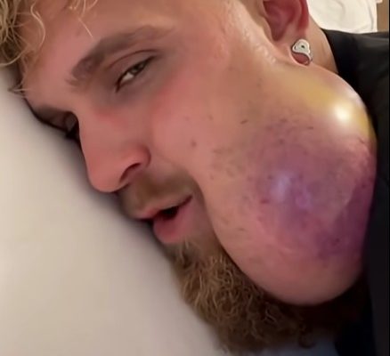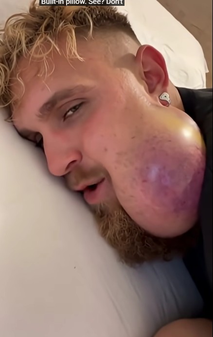 The image above shows a severely swollen jaw and cheek area, likely caused by a large facial abscess or infected cyst. The skin appears stretched, shiny, and discolored — clear signs of intense pressure from pus buildup beneath the surface. This type of infection can become extremely painful and may even affect speaking, eating, or sleeping.