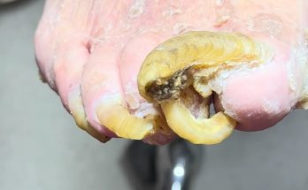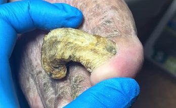The Video shows one of the most dramatic toenail conditions you will ever see. Thick, curved, yellowed, and hardened like a claw, this nail has grown far beyond its normal …